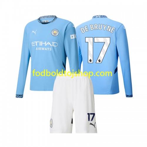 Manchester City Kevin De Bruyne 17 Børn Hjemme Fodboldsæt 2024-25 L/S (+ Korte bukser)