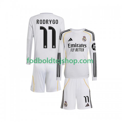 Real Madrid Rodrygo 11 Børn Hjemme Fodboldsæt 2025-26 L/S (+ Korte bukser)